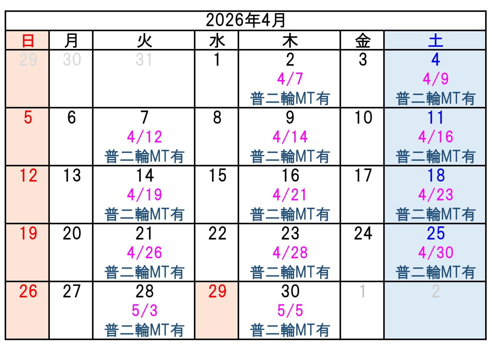 | シングルB 宿舎:コンスタンツェ・レゾナンス | 女性 | 大型二輪MT | 普通二輪MT | 150,000円税込 | 最短6日 |